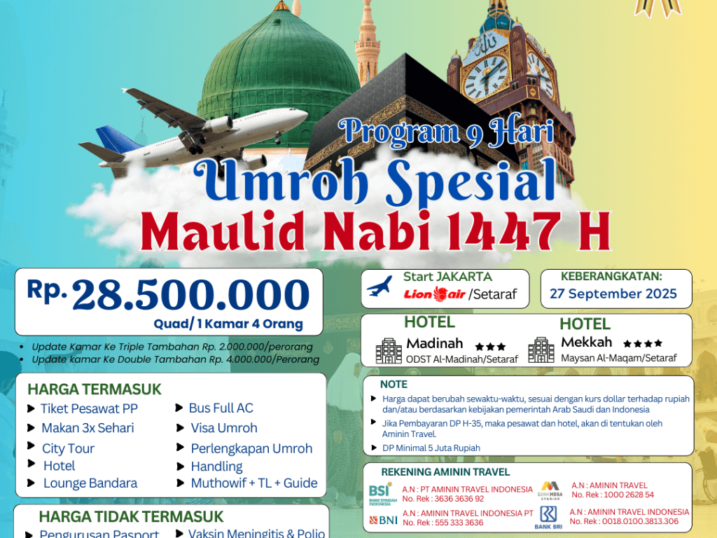 - Semua pembayaran hanya sah jika ditransfer ke Rekening Resmi atas nama PT Aminin Travel Indonesia